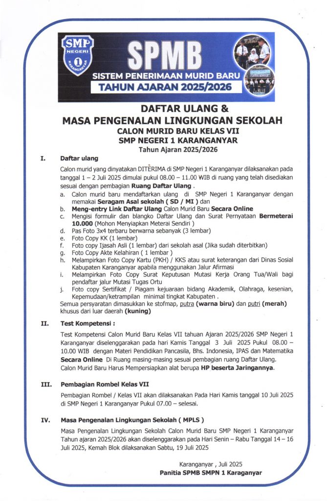 SMP Negeri 1 Karanganyar Tahun Ajaran 2025/2026